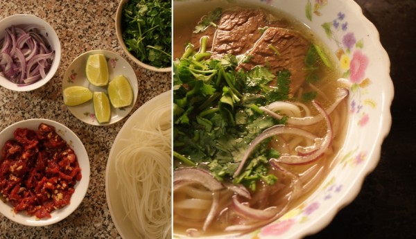 Ano, mám na mysli nudlovou polévku zalitou horkým vývarem, doplněnou slepičím (ano, správně se jí se slepičím!) nebo hovězím masem a posypanou hromadou čerstvých bylinek. Ačkoli se jí v Čechách říká polévka, my Vietnamci ji jíme jako hlavní jídlo, a to k snídani, k obědu nebo k večeři. A někdo taky v noci, když se vrací z flámu :)